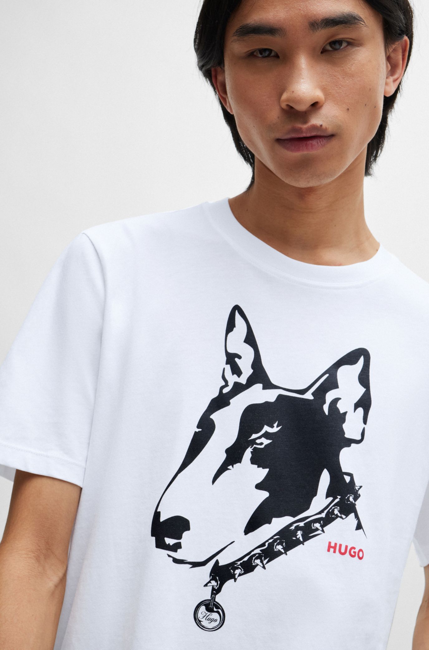 HUGO Cotton jersey T shirt with dog artwork Very well made.