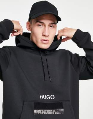 HUGO Devertree text logo overhead hoodie in black Very well made.