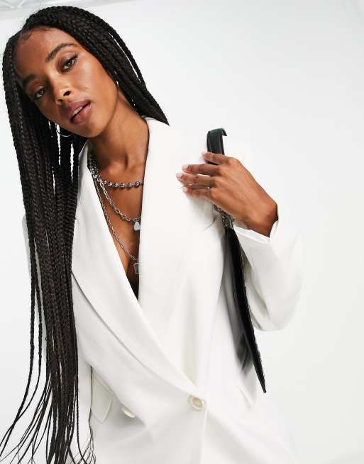 Fenty Double Breasted Peak Lapel Blazer Ivory Cotton Very well made.