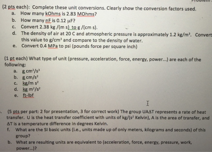 Solved Complete these unit conversions. Clearly show the Chegg Very well made.