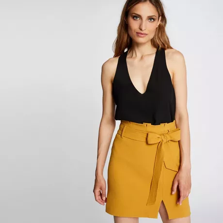 Jupe droite satin fendue jaune moyen femme Morgan Very well made.