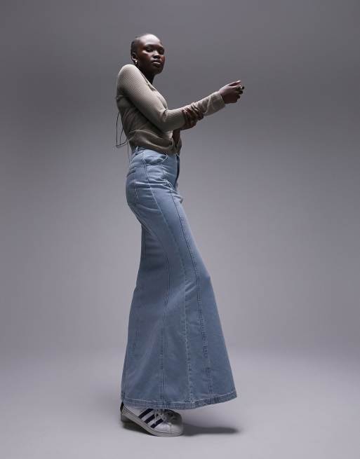 Topshop Tall Jupe taille haute en jean avec ourlet vas Bleu Very well made.
