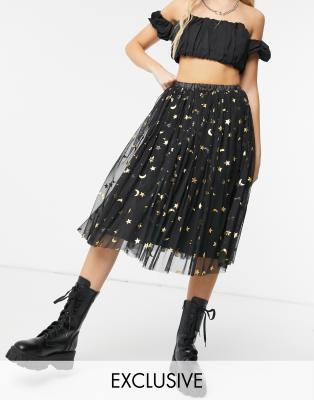 Lace Beads Exclusive Tulle Midi Skirt In Black Glitter Moon Print multi ModeSens Very well made.