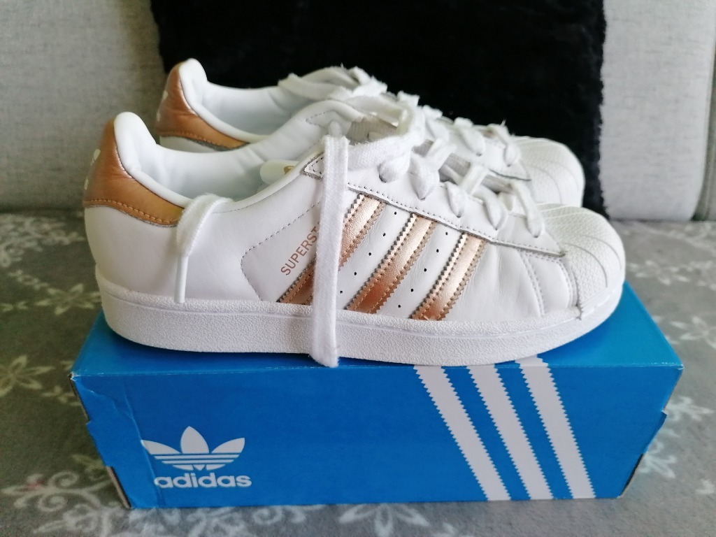 ADIDAS ORIGINALS SUPERSTAR SHOES Cloud White Copper Metallic Core Very well made.