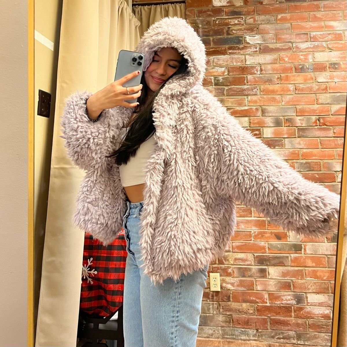 Style Purple faux fur coat Purple fur coat Coat Very well made.