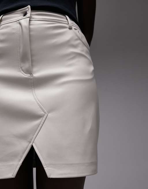 Topshop Tall leather look denim styled mini skirt in ecru Very well made.