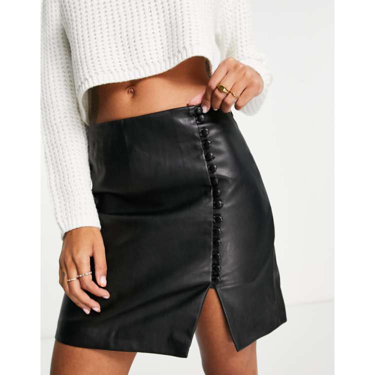 River Island button detail faux leather mini skirt with split hem in black Very well made.