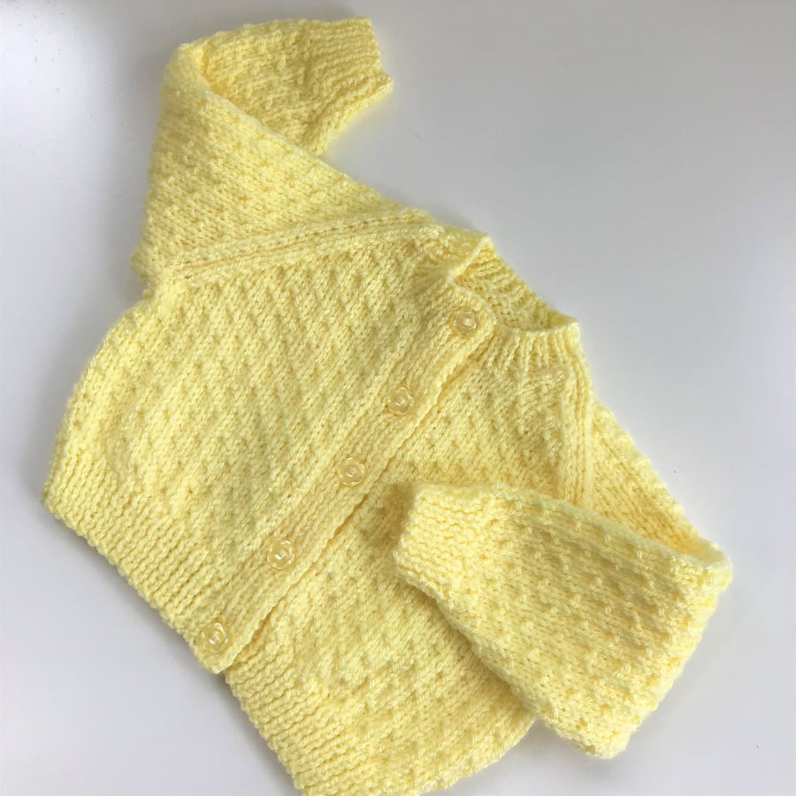 Brand New Hand Knitted Crocheted Unisex Baby Cardigan Lemon Very well made.