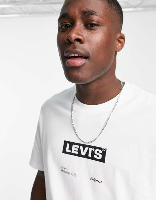 Levi s central boxtab script logo relaxed fit t shirt in white ASOS Very well made.