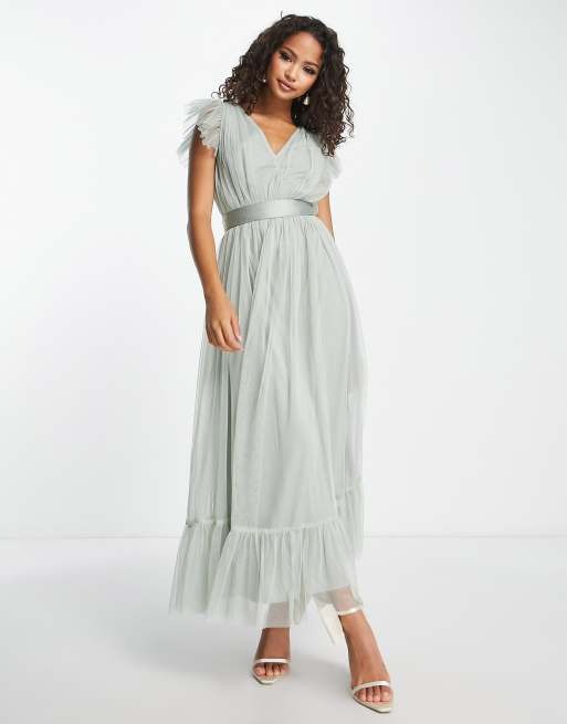 Anaya Bridesmaid flutter sleeve midaxi dress in sage green Very well made.