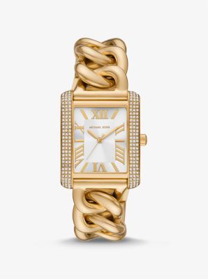 MK Oversized Ritz Pav Gold Tone Curb Link Watch Gold Michael Very well made.