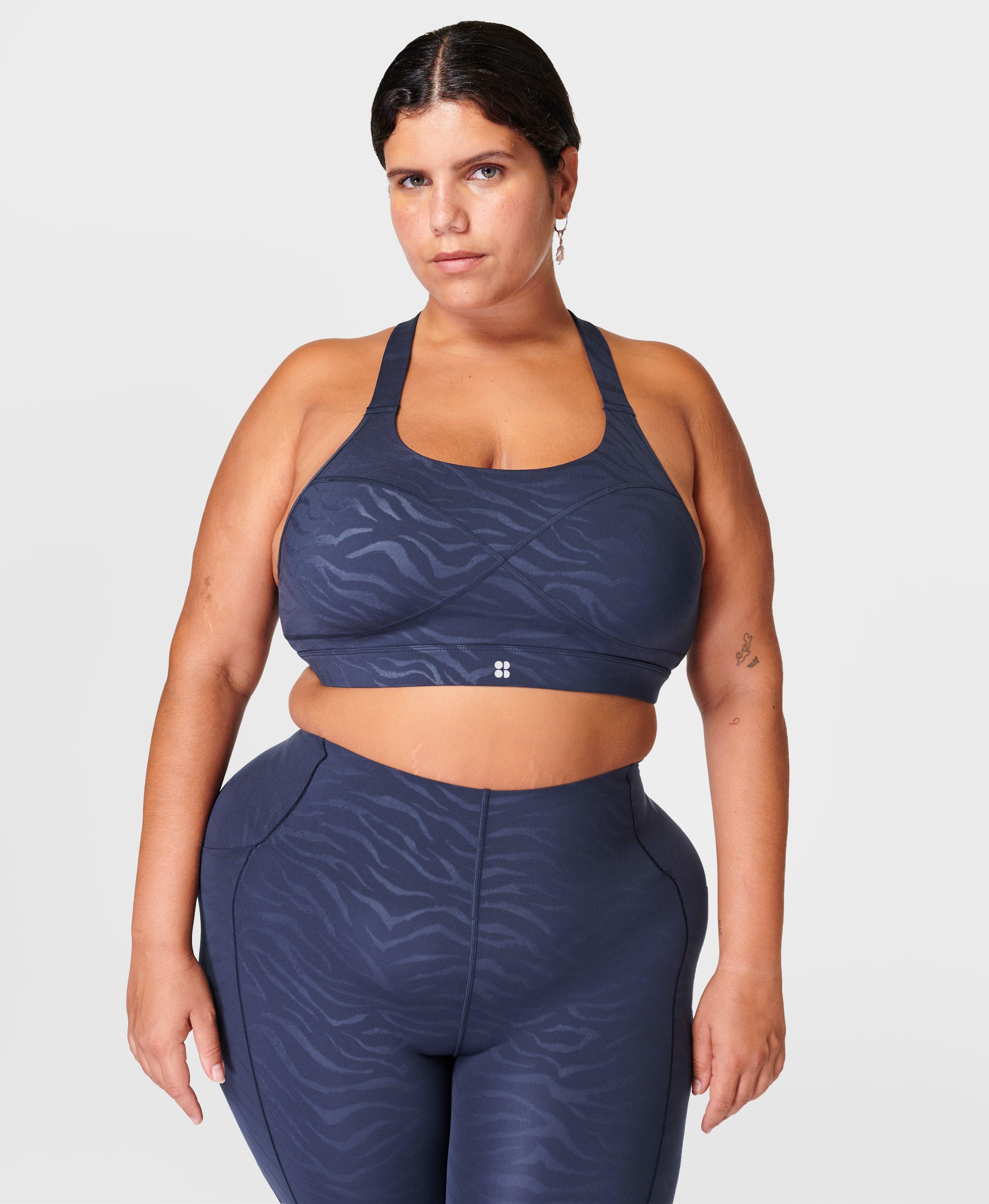 Power Medium Support Sports Bra Blue Tiger Emboss Print Very well made.