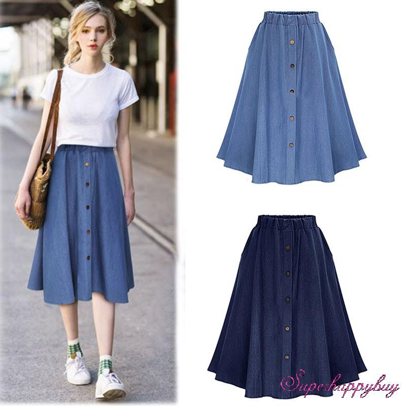 Women Denim A Line High Waisted Midi Skirt Casual Fashion Loose Very well made.