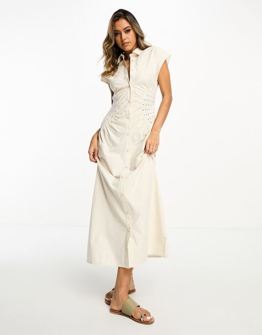 ASOS DESIGN sleeveless shirt midi dress with crochet waist in natural Very well made.