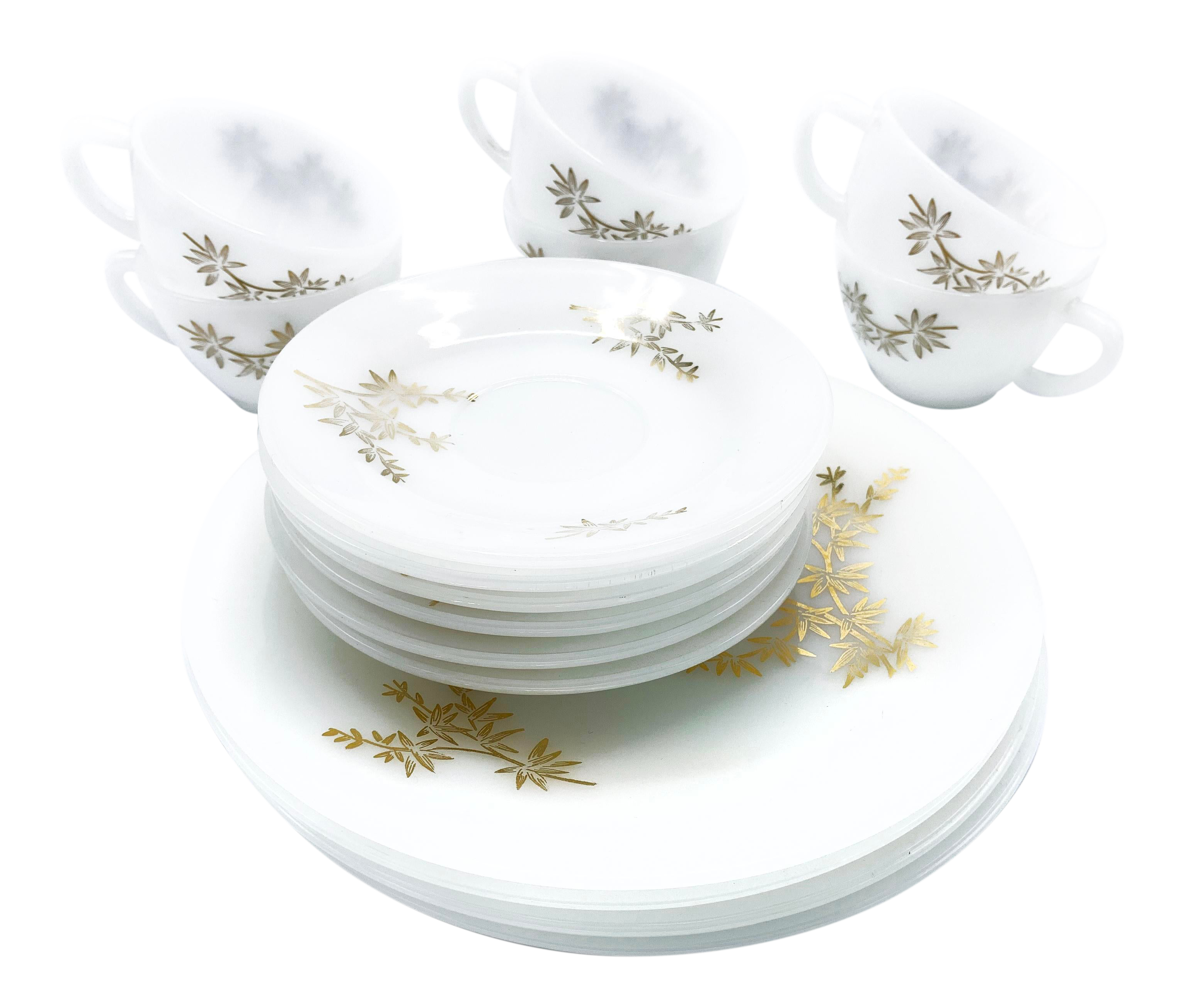 Vintage Mid Century Federal Glass White Milk Glass With Metallic Very well made.