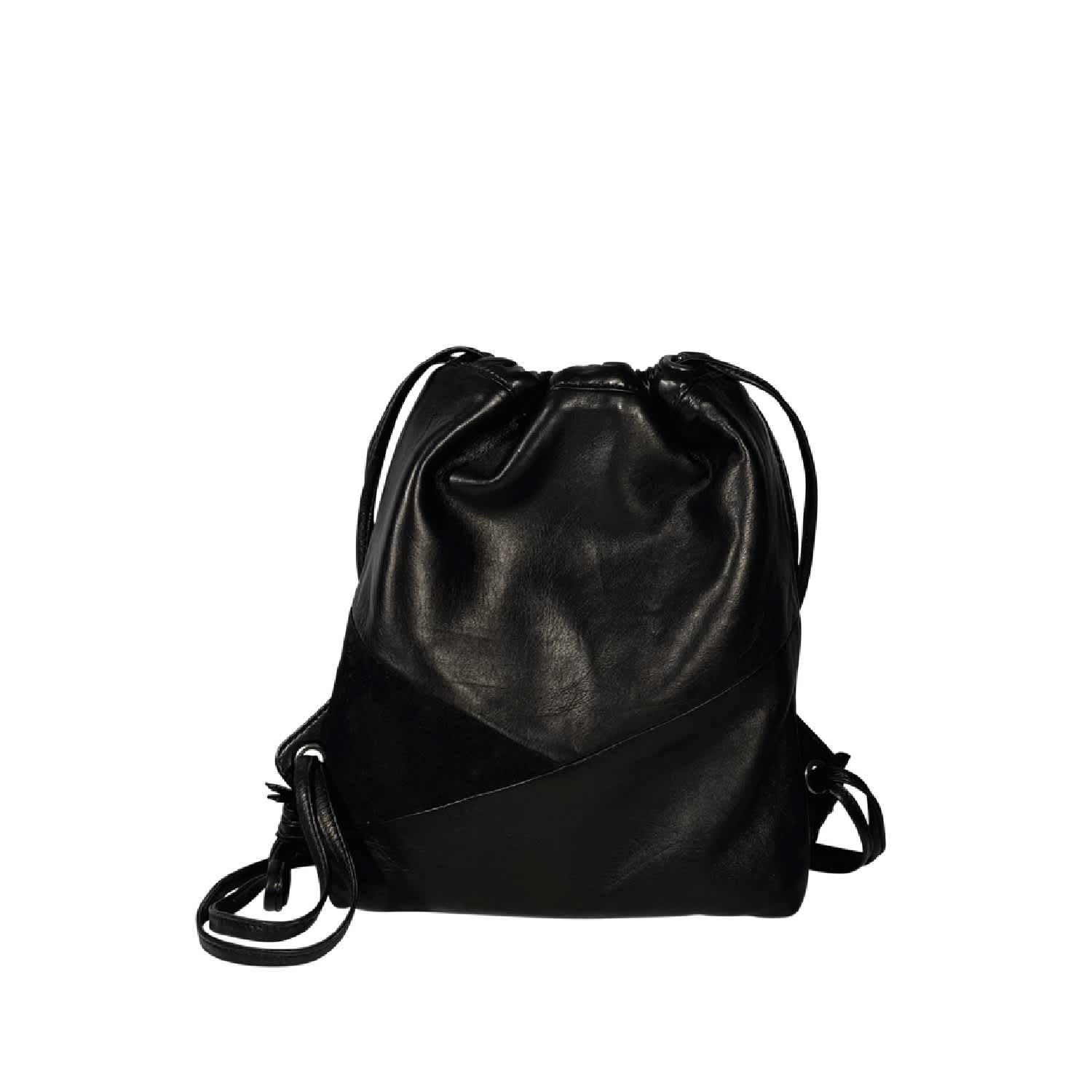 Mini Mavis Drawstring Backpack In Leather And Suede In Black Very well made.