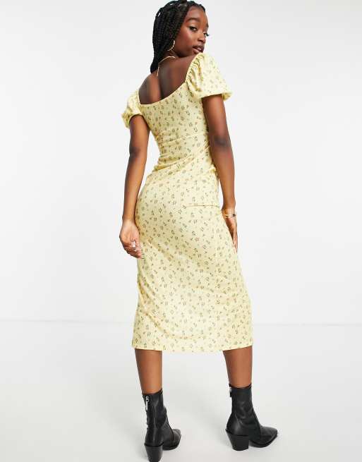 Yellow midi dress wedding guest PrettyLittleThing IE Very well made.