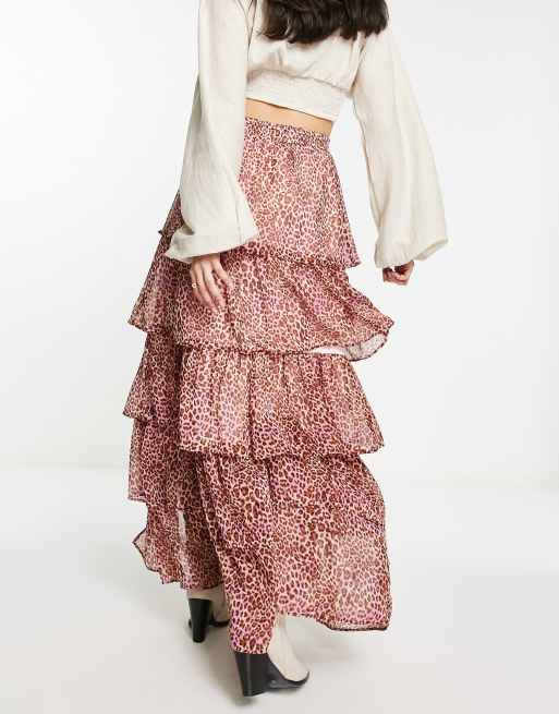 Miss Selfridge festival chiffon tiered maxi skirt in micro animal print MULTI Very well made.