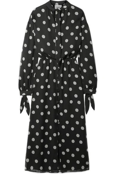 Zahara Pussy bow Polka dot Crinkled chiffon Midi Dress In Black Very well made.