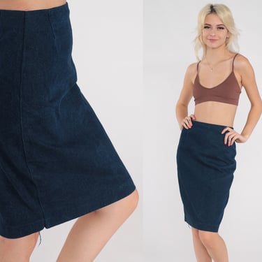 Vintage 80s Deadstock Dark Blue High Waisted Below the Knee Pencil Very well made.