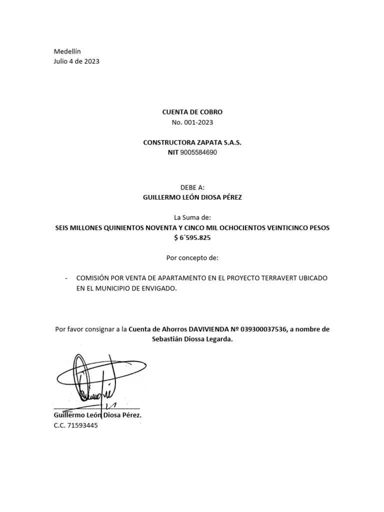 Cuenta de cobro 001 2023 COMISION TERRAVERT GUILLERMO DIOSA PDF Very well made.