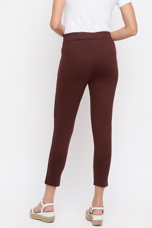 Women Burgundy Show Button High Waist Jeggings Very well made.