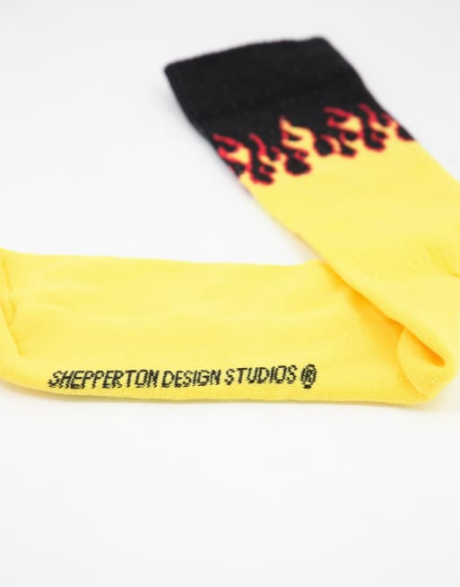 MSE Unisex Flame Black White Yellow Fire Harajuku Socks Skateboard Very well made.