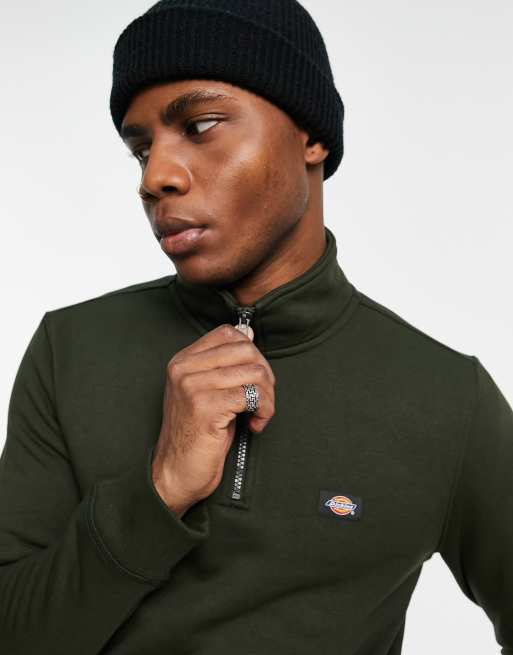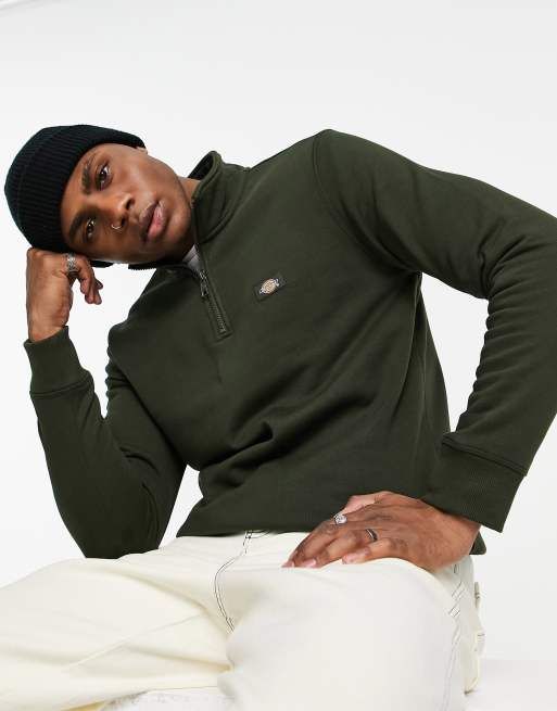 Dickies Oakport 1 4 zip sweatshirt in olive green ASOS Very well made.
