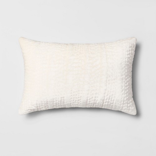 Quilted Velvet Lumbar Throw Pillow Cream Opalhouse Ivory by Very well made.