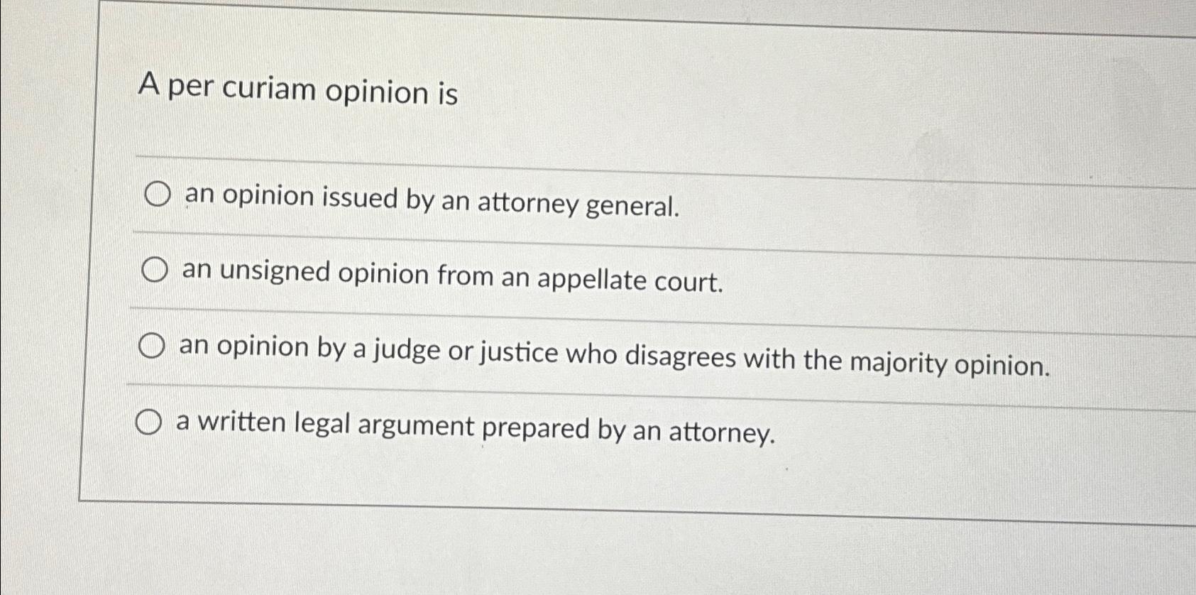 Solved A per curiam opinion isan opinion issued by an Chegg Very well made.