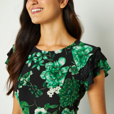 Perceptions Plus Short Sleeve Floral Puff Print Midi Fit Flare Very well made.