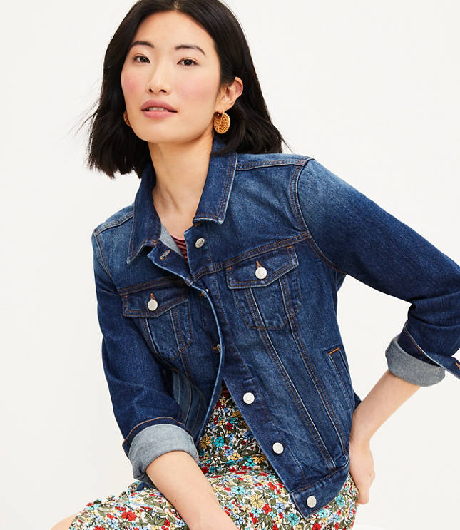 Petite Denim Trucker Jacket in Authentic Dark Wash Very well made.