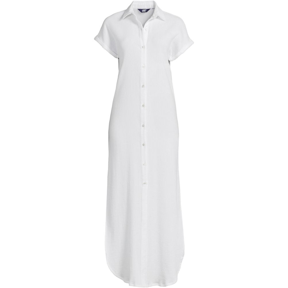 Women s Petite Cotton Gauze Button Front Maxi Dress Lands End Very well made.