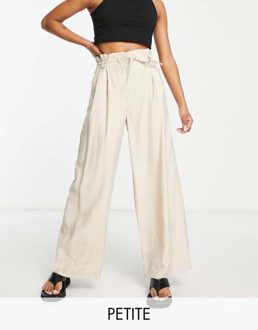 Vila Petite high waisted wide leg pants in cream pinstripe Very well made.