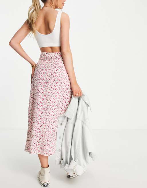 Petite Pink Spot Satin Midi Skirt New Look Very well made.