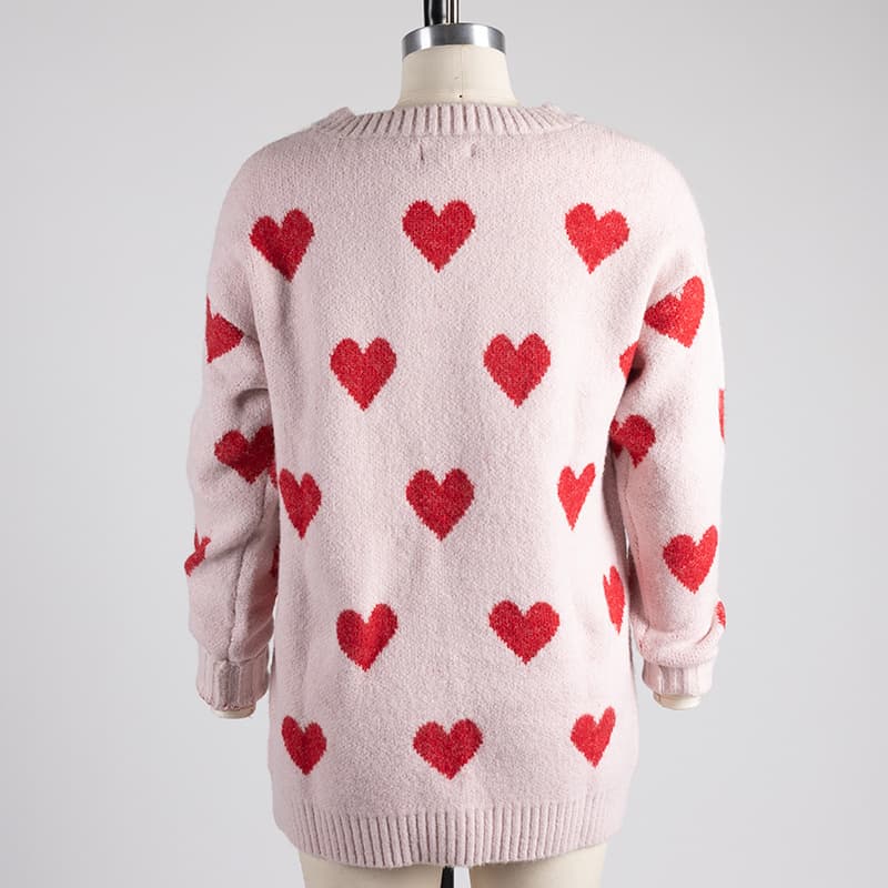 Precious Oatmeal and Pink Heart Sweater Cute Women s Sweaters Very well made.