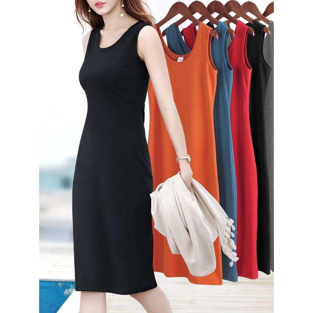 Maxi Dress Colored Plain Sleeveless 12COLORS KNEE STRECTABLE DRESS Very well made.