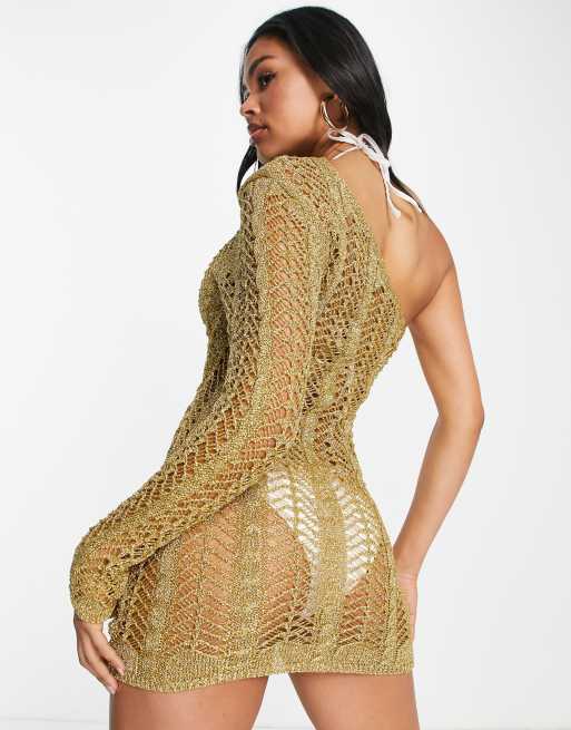 Fashionkilla one shoulder knitted mini dress in gold ASOS Very well made.