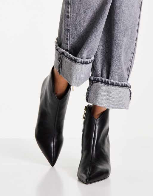 Fitted block heel pointed toe ankle boots Shoes Women Bershka Very well made.