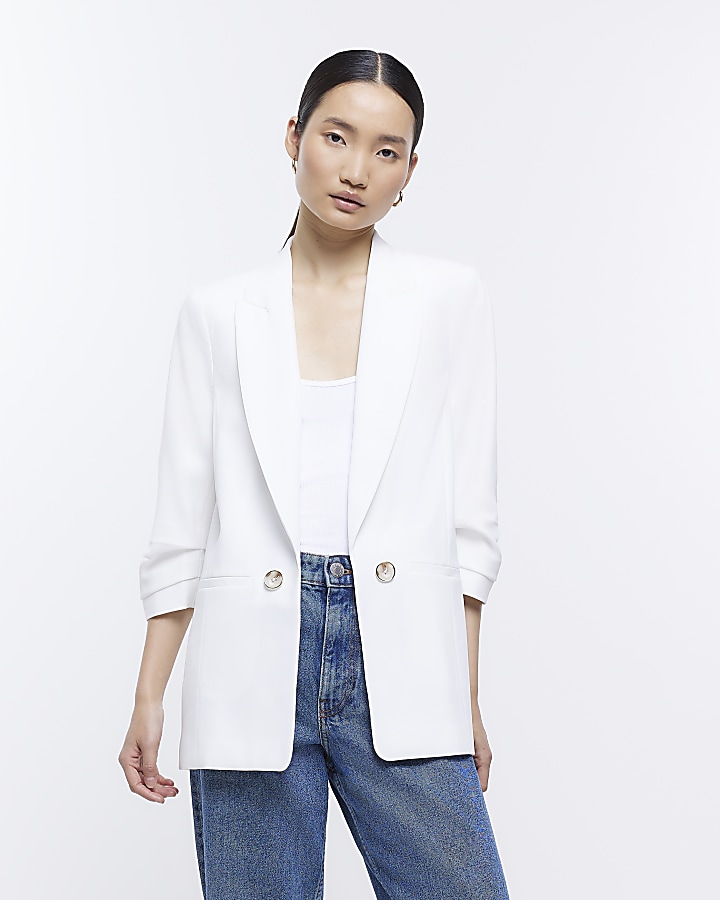 White ruched sleeve blazer Very well made.