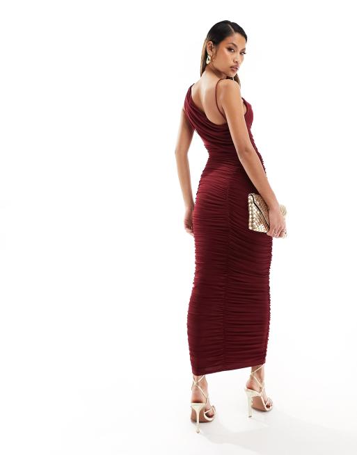 ASOS DESIGN asymmetric cowl cami midi dress with diagonally ruched skirt in wine Very well made.