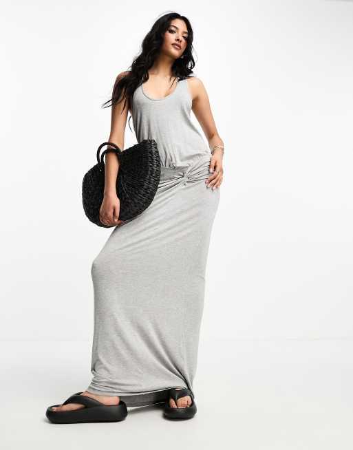 ASOS DESIGN scoop neck maxi dress with twist back and ruched skirt in grey Very well made.