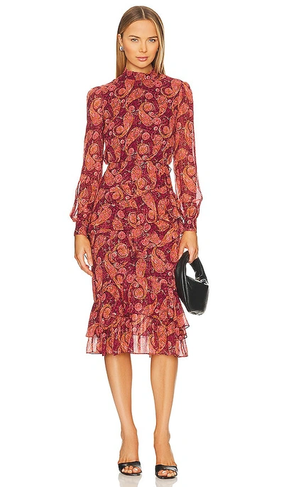 Saloni Isa Silk Georgette Tiered Ruffle Midi Dress In Ruby Paisley Very well made.