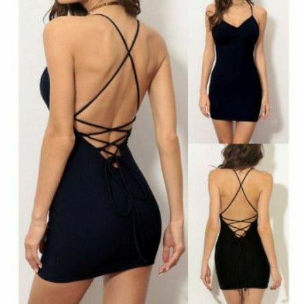 Black Sexy Bodycon Backless Strappy Stretchable Party Dress for Very well made.
