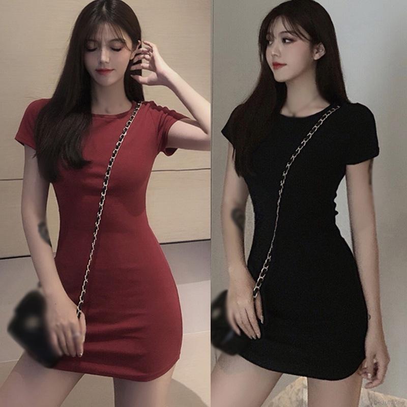 Women Solid Sexy Slim Casual Short Sleeve Bodycon Dress Shopee Very well made.
