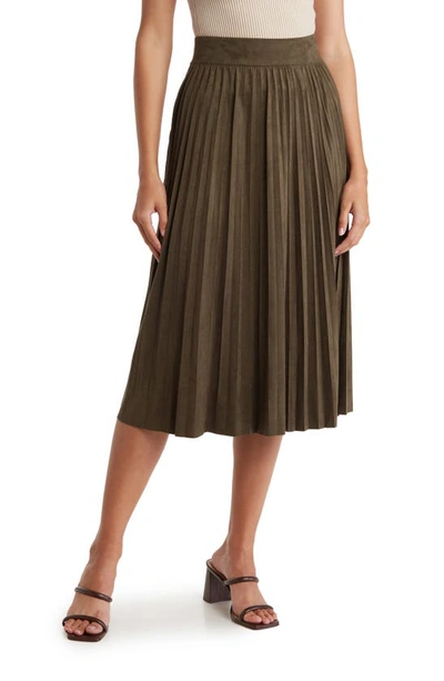 T Tahari Faux Suede Pleated Midi Skirt In Olive ModeSens Very well made.