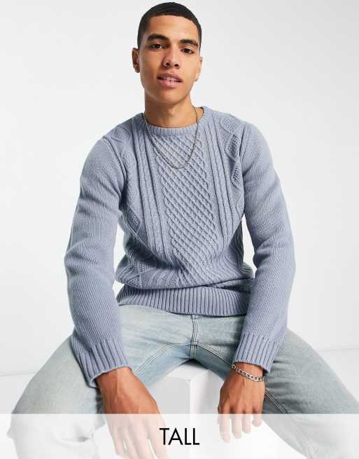 Le Breve Tall diamond cable knit sweater in light gray ASOS Very well made.