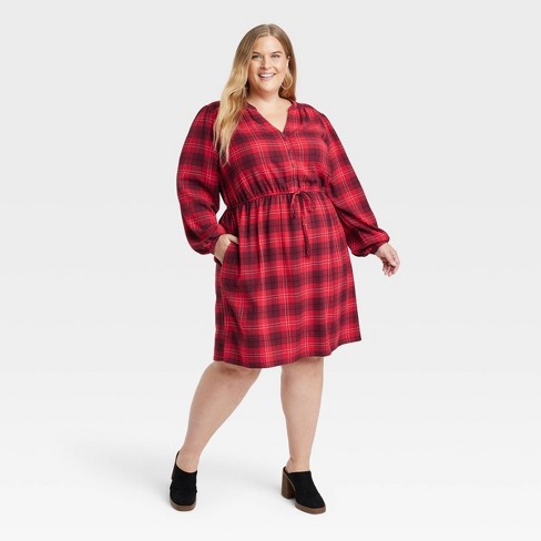 Women s Long Sleeve Plaid A line Dress Knox Rose Red Xxl Target Very well made.