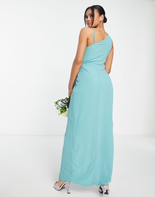TFNC Bridesmaid chiffon wrap maxi dress with hi low hem in sea blue Very well made.