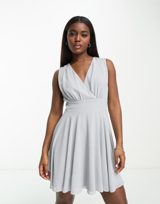 TFNC Bridesmaid mini skater dress in gray ASOS Very well made.